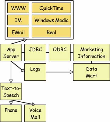 Mixed-reality technologies are built on modern web-application "layered" technologies. And they're built on technologies which work well together - ODBC databases (MySQL, SQLServer, Oracle), web servers (Apache and IIS), Java servlets, POP3 and SMTP email, and audio and video servers (QuickTime, Windows Media and Real). Because they're designed to interoperable standards, parts can be interchanged, scaled up in size or replaced as needed to handle capacity issues. And license fees for supporting software are lowyou don't get locked in to expensive proprietary solutions to your software needs.